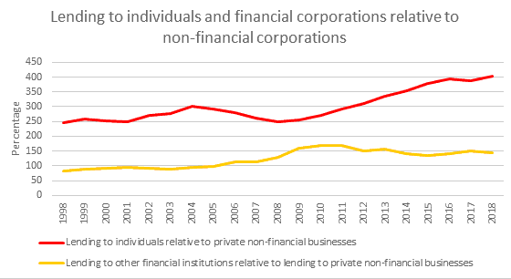 Figure 11: Lending to individuals and financial corporations relative to non-financial corporations[12]