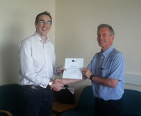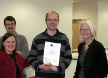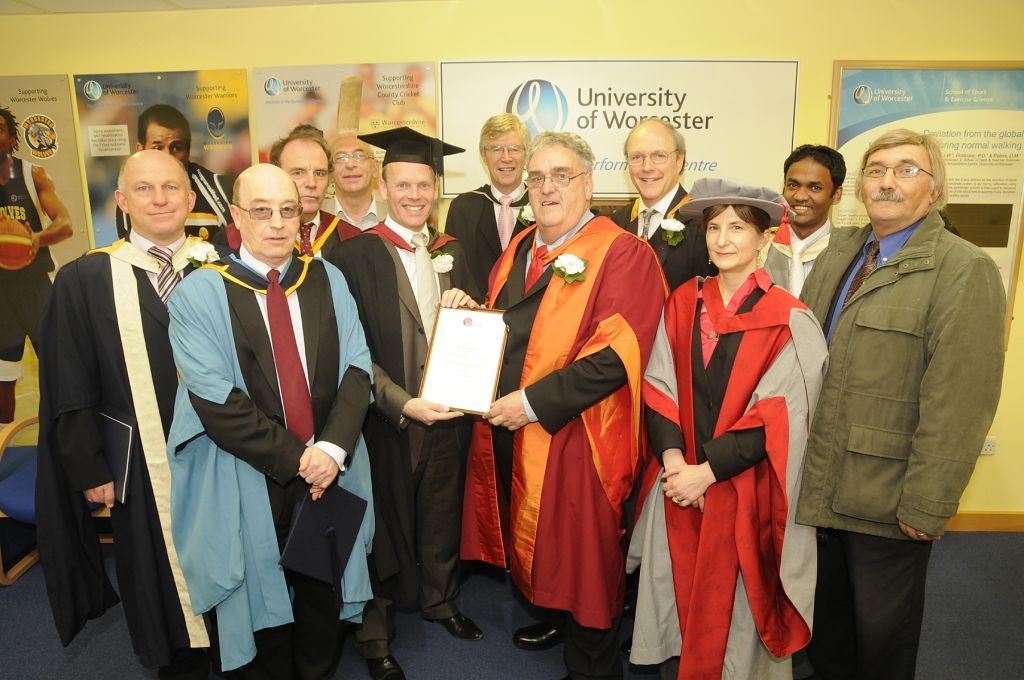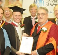 Andrew Hale (right) receives his award from Prof David Green (Vice Chancellor of the University of Worcester) and colleagues