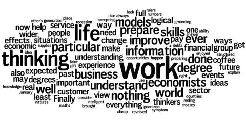 The three main themes that emerged were; how an economics degree prepared students for a range of jobs, how the current financial crisis has made economics students even more prepared for life and how their economics degree has taught them to think for themselves.
