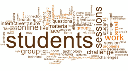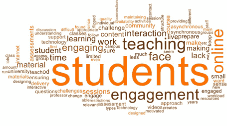 The following word cloud was used to extract common threads from the respondents’ answers. Student engagement and online interaction stand out.
