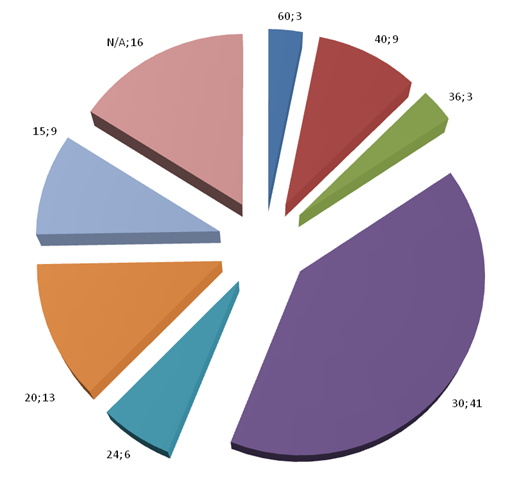 The dissertation module is given a weighting of 30 credits, thereby accounting for a quarter of the student’s final year of study. As shown in Figure 4, for Economics departments that offer dissertation options (84 per cent of our sample of departments do offer a dissertation), this is the most popular weighting applied.