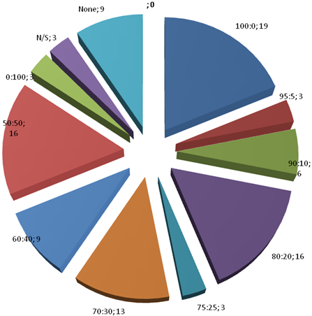 In light of the above discussion, two obvious issues concern the extent to which other institutions employ coursework in their assessment of econometrics for final year undergraduates and how the changes introduced at Swansea have fared. With regard to the former point, this is illustrated by the results presented in Figure 6 where the examination: coursework split for the departments surveyed are provided. The most popular form of assessment is clearly via end of module examination only, with very few departments considering a module with even as much as 50 per cent coursework. Of the departments examined, one institution (which corresponds to 3 per cent of the institutions included) did employ assessment via coursework only. However, this was on the basis of a single piece of coursework rather than multiple projects each designed to address particular elements of the module. With regard to the final 12 per cent of departments surveyed, 3 per cent did employ a mix of examination and coursework which was not specified (N/S) while 9 per cent did not provide final-year econometrics.