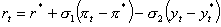 [6] The actions of the Federal Reserve can be approximated by the values: σ1 = 0.5 and σ2 = 0.5 (Taylor, 1993; in Debelle, 1999). So the assumption of a simple inflation target is a sacrifice of realism for simplicity.