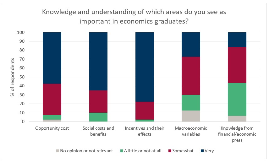 - Knowledge and understanding of which of the following areas do you see as important in economics graduates?