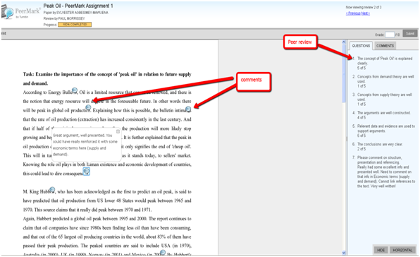 Fig 2. Example of a PeerMark Interface