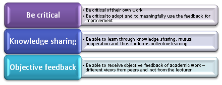 On the other hand, there is an interesting argument that emerged from the students’ voices in this research - one may complain that it is less convincing being marked by peers (indicating lack of confidence in peer’s knowledge), whereas another may feel diffident in terms of marking peer’s work. We believe that all postgraduates must have certain intellectual capability. We would definitely argue that such intellectual ability may vary from one to the other but that learning needs to be designed so that it addresses the different intellectuality to maximise the learning experience. It is no longer a matter of “being as capable as the lecturer” in order to assess others’ work. Instead, it is about applying and practicing the capability through peer assessment. With such an exercise, the capability of academic judgment, the challenge of critical thinking and the facilitation of knowledge construction will be developmentally crystallised. This is very helpful to the postgraduates’ learning experiences, especially their development for the professional workplace that requires these capabilities.