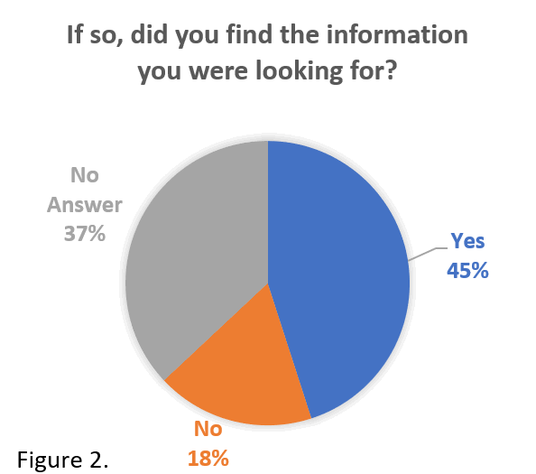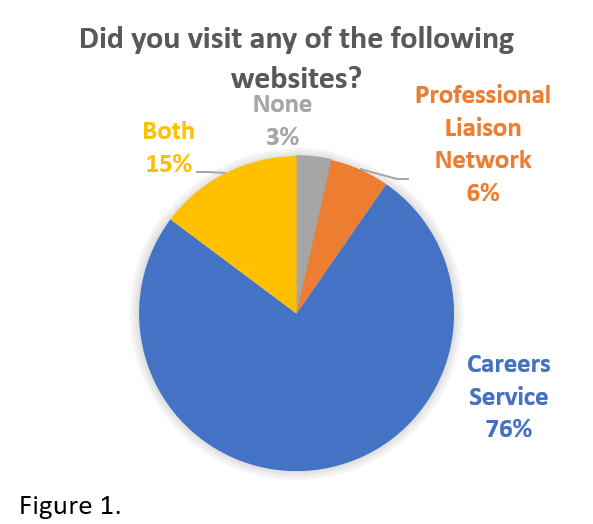 Figures 1 and 2 show that until the beginning of their second year of studies, 76% of students have visited the Careers Service website and about 45% found the information they were looking for. Thus, a large number of students are able to navigate the relevant websites and find relevant support and information. Nonetheless, there is space for improvement because other websites such as the Professional Liaison Network had only been visited by 6% and 18% did not find the information they needed.