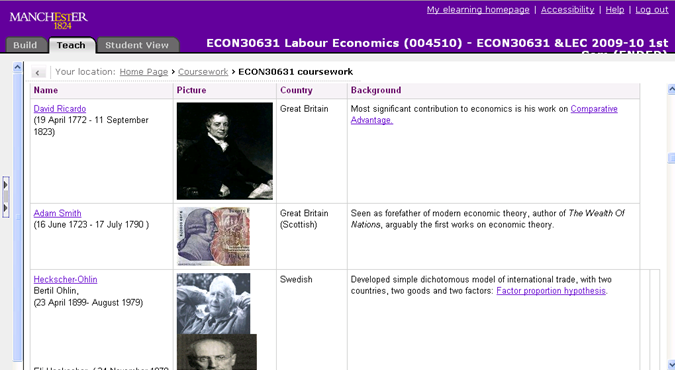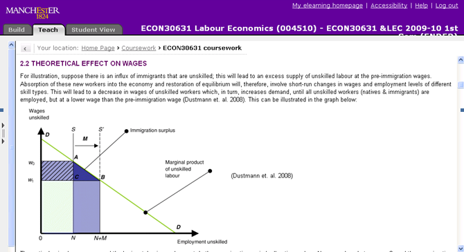 The Labour Economics module is a third year optional module taken by students on single and joint Honours economics degree programmes. Enrollment is typically around 120 students and prior to the wiki project the assessment was one-third by a 2000 word essay and two-thirds by a final written exam. The module is entirely traditional, based around 15 lectures on around 7 or 8 separate topics such as labour demand, labour supply, minimum wages, labour market discrimination etc. Prior to 2009/10, lectures were supported by tutorials where students were expected to read (but in practice frequently did not) journal articles and textbook chapters in order to answer a set of questions which would deepen and broaden understanding of the lecture material.