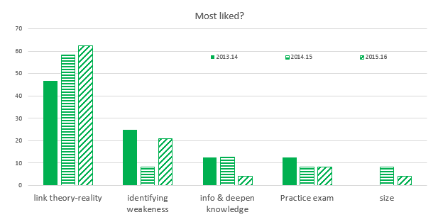 The innovation was first introduced in 2013/14 and has been continued in subsequent years. Here we provide evidence of students’ opinion on this innovation for three academic years, 2013/14, 2014/15, 2015/16.