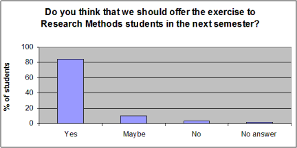 On average, students found the approach fairly helpful, and 84% of them thought the exercise should be repeated with students in the subsequent semester:
