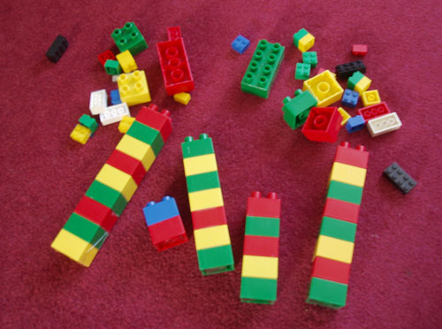 Ask each group to make towers containing different (random) numbers of blocks