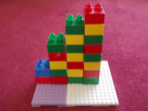 Having experimented with plastic blocks, and graphs, and/ or spreadsheets, your students should find that diagrams like these hold no horrors for them.