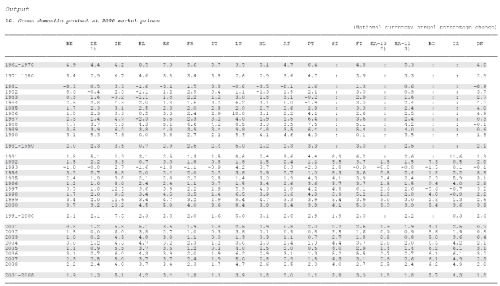 The first page of Table 10 from the Spring 2007 version of the European Economy Statistical Annex is shown below.